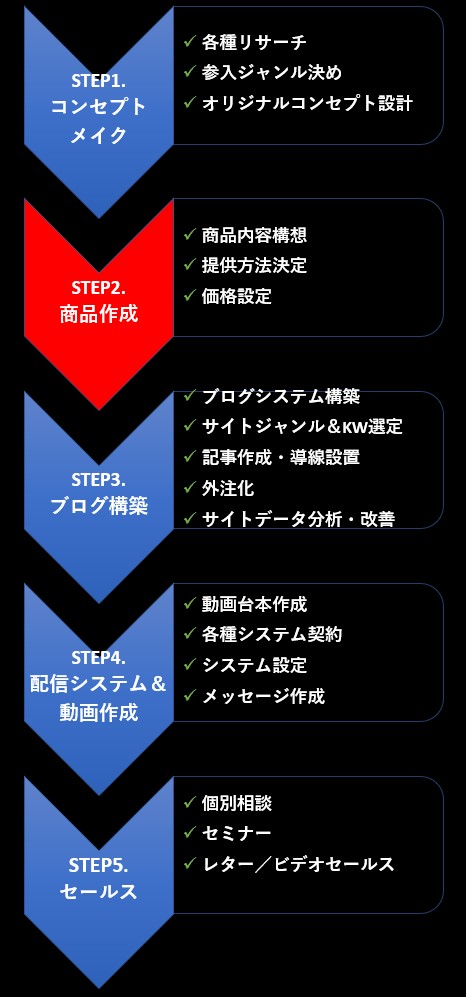 商品設計は、セールスファネル構築のSTEP2にあたります。